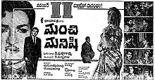 Manchi Manishi (transl. Good Man) is a 1964 Indian Telugu-language drama film, produced by K. Subba Raju under the Chaya Chitra banner and directed by K. Pratyagatma. It stars N. T. Rama Rao, Jamuna and Jaggayya, with music jointly composed by S. Rajeswara Rao and T. Chalapathi Rao.[1][2]