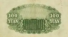 100 yuan | Black and blue | Ta Ch'eng Tien building, Confucius | Silos | 1944 |