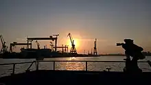The shipyard is spread over an area of 980,000 m2 (10,500,000 sq ft), has three dry docks with a total length of 982 m (3,222 ft) and 1.6 km (0.99 mi) of berths.[7] In 2002 the company delivered two tankers of 42,500 DWT to the Norwegian company Kleven Floro used for the transportation of orange juice.[8] One of the main customers of the shipyard is the German company Hamburg Süd which ordered six container ships of around 6,000 TEU each, and seven ships of 7,100 TEU each as well as four tugboats.[9] The company also signed in 2005 an agreement with Mediterranean Shipping Company S.A., NSB Niederelbe, Gebab and Conti Reederei companies for the construction of 12 container ships of around 5,000 TEU each that will be delivered in stages until 2011 at a total cost of US$1.1 billion.[9]