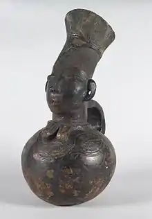 The Mangbetu is African tribe part of Democratic Republic of the Congo, living in the Orientale Province. The people of this tribe produced a large variety of highly developed art and music, such as harps, guitars, pots, and other crafts.[1] Their pots are still prominent in today's art spectrum, and ones that have been constructed in the early days of the tribe are sold to collectors and people alike for high prices.[2]