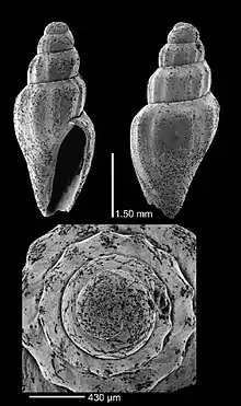 | Shell and protoconch of Mangelia loraeformis (syntype at the Smithsonian Institution) | |