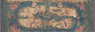 The Manichaean Diagram of the Universe (Chinese: 摩尼教宇宙圖; Japanese: マニ教宇宙図) is a Yuan dynasty silk painting describing the cosmology of Manichaeism, in other words, the structure of universe according to Manichaean vision. The painting in vivid colours on a silk cloth (originally measuring approximately 158 by 60 centimetres) survives in three parts, whose proper relation to one another and digital reconstruction (shown here) was published by Zsuzsanna Gulácsi.[1]