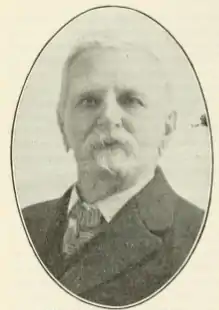 After the end of the war, fearing reprisals like many Confederate veterans, Kimmel fled Houston on horseback to Mexico City and became a civil engineer there, working on the construction of the railroad connecting Mexico City and Vera Cruz (or Imperial Mexican Railway), before coming back to Cape Girardeau, Missouri in 1866. While in Mexico, he served as a mercenary for Maximilian I, according to contemporary letters Kimmel wrote to his close friend and fellow 2nd Cavalry officer Fitzhugh Lee.[11] He married Sibbella Lambert on December 28, 1868, and moved to Henderson, Kentucky, in 1872, where he worked as a civil engineer and superintendent for the Saint Bernard Mining Company at St. Charles. Kimmel had seven children, including Husband E. Kimmel (born 1882),[8] who went on to command the United States Pacific Fleet during the Pearl Harbor attack. He worked as a civil engineer until 1884, when he resigned from the company, and was a coal dealer and real estate agent from 1885. Kimmel lived in Henderson for the rest of his life, serving on its school board and city council.[1] Kimmel died of a cerebral hemorrhage at his home on February 27, 1916,[9] at age 83, and was buried in the city's Fernwood Cemetery.[2][12] A state historical marker was later placed at his home in Henderson, at 512 North Green Street.[8][13]