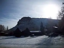 On the summit of the hill are various radio towers for both local business and government entities. A tower for the city of Green River 's police department is the newest tower, constructed some time in the summer of 2004. A local cellular telephone tower is located at the center of the hill, and is primarily what can be seen from surrounding areas. It was constructed in late 2001 and early 2002.[1] The hill also has a tower for local KCSP affiliate radio station K232CU, which serves Green River on 94.3 FM.[2][3]