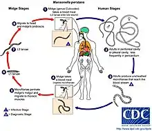 - 1 2 3 4 5 6 CDC "Filariasis. Life Cycle of Mansonella perstans" (2009).