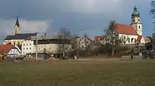 Centre of Mantel, on the left the Catholic parish church, on the right the Protestant parish church