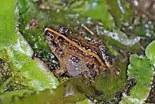 Mantidactylus femoralis is a species of frog in the family Mantellidae. It is endemic to Madagascar. It is a complex of multiple species.[2] Its natural habitats are subtropical or tropical moist lowland forests, subtropical or tropical moist montane forests, subtropical or tropical high-altitude shrubland, rivers, and heavily degraded former forest. It is threatened by habitat loss.