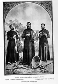 The heart of Roque González de Santa Cruz, burned and pierced with an arrow, was found by Alpoim inside a bag of relics.[13] His heart wrapped in the blanket, was escorted by soldiers of Captain Alpoim to the city of Corrientes.[14]