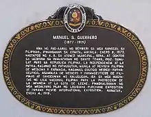 1. 1 2 3 4 Manuel S. Guerrero (Marker) (in Filipino). Nuestra Señora de Guia Plaza: National Historical Institute. 1954.