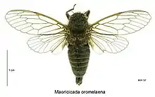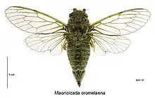1. 1 2 3 4 "Maoricicada oromelaena (Myers, 1926)". Manaaki Whenua - Landcare Research. Retrieved 17 December 2018.