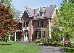 It has seen almost no alterations since. The growth of Balmville in the later 19th century led to the carriage house being split off onto its own lot and separately developed as a residence in 1903. In the 1950s, the corbelling on the chimneys was removed and the garage wing added. At the time of its listing on the Register, the front balcony was described as having also been removed around the same time, but it has been restored since then.[1]