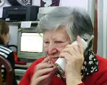 María Mariani, talking on the phone