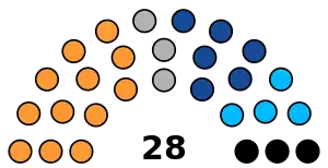 | Seats | 28 Councillors (25 elected + 3 nominated) |