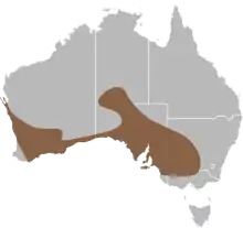 Marble-faced delma populations are known to be in the Broken Hill Complex Interim Biogeographic Regionalisation of Australia Region, in some of the sub-regions of the Cobar Peneplain Interim Biogeographic Regionalisation of Australia Region, and in sub-regions of the Murray Darling Depression Interim Biogeographic Regionalisation of Australia Region.[4][5][6] In these areas the species in known to be within different vegetation formation and classes, including the Stony Desert Mulga Shrublands which is an Acacia sub-formation, Dune Mallee Woodlands which is a shrubby sub-formation, and Sand Plain Mallee Woodlands.[4][5][6] These areas are arid to semi-arid warm zones.[4]