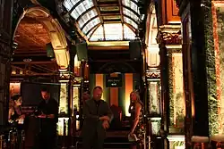 The bar was designed by Varney Parkes. Its features include plate-glass mirrors, mosaic floors, cedar timbers, a domed roof, stained-glass windows and marble walls and pilasters. Fourteen paintings by Julian Ashton are hung throughout.[3][4] The only differences to the original bar is the lack of natural light, and the location of the paintings is different.[1]