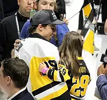When he was first drafted, he lived with Mario Lemieux for a brief period of time as he searched for more permanent living arrangements.[78]
