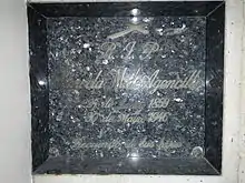 Though she endured the 1945 Battle of Manila, the health of Doña Marcela Mariño de Agoncillo, who was alternatively called Marcela and "Lola Celay" during her old age,[17] was steadily deteriorating. She continued to mourn her deceased husband to such an extent that her daughters found it necessary to hide all his remaining photographs.[31] On May 30, 1946, she quietly died in Taal at the age of 86. Her remains were brought from Taal to Manila and interred alongside her husband in the Catholic cemetery of La Loma according to the wishes of her last will. Their remains were later transferred to Santuario del Santo Cristo in San Juan, Metro Manila.