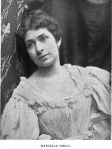 Marcella Lindh was the first soprano to sing with the John Philip Sousa Band, joining when the band formed in 1892 and staying into 1894.[3] She sang with the Sousa band at the St. Louis World's Fair in the autumn of 1893.[4] A Pennsylvania newspaper during this time praised her voice as "one of the few incomparable soprano voices of the generation...cultivated to such a nicety of perfection, as makes it a charm to the cultivated ear."[5]
