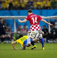 On 31 May 2014, Brozović was included in Niko Kovač's final list for 2014 FIFA World Cup,[65] and made his debut for the main squad on 7 June, starting in a 1–0 success against Australia at the Estádio de Pituaçu.[66] Brozović made his World Cup debut five days later, playing the last 26 minutes in a 1–3 loss against Brazil.[67]