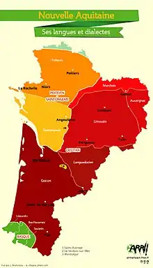 - ↑ Dussauchaud, Olivier (2017). Synthèse sur l'étude de la part d'occitan limousin en poitevin-saintongeais (mémoire en langue occitane) (PDF). Toulouse: University of Toulouse-Jean Jaurès.