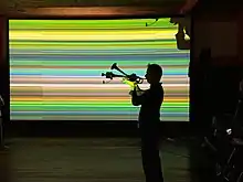 Blaauw has also worked in close collaboration with famous German painter Gerhard Richter. Blaauw, with Ensemble Musikfabrik, premiered "Richter's Patterns" by composer Marcus Schmickler at the Kölner Philharmonie in 2016,[9] and Blaauw has continued a close working relationship with the artist since. In 2019, Blaauw played for the premiere of Richter's "Moving Picture 946-3" at the Kiyomizu-dera Temple in Kyoto, Japan. The film was created in collaboration with Corinna Belz (filmmaker) with score for solo trumpet and electronics by Rebecca Saunders and has since also been a featured event at Musikfest Berlin 2020.[10]