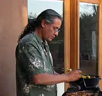 Marcus Amerman is a Choctaw bead artist, glass artist, painter, fashion designer, and performance artist, living in Idaho. He is known for his highly realistic beadwork portraits.