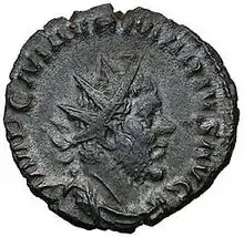 His first decision was to allow his troops to sack the city of Moguntiacum.[6] He then moved to Augusta Treverorum (Trier) to consolidate his power base.[7] His reign lasted no more than two or three months before Postumus' praetorian prefect Victorinus had Marius killed in mid-269, most likely at Augusta Treverorum.[8]