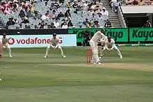 Harris made his Test debut on 6 December 2018, opening the batting alongside his Victorian teammate Aaron Finch,[28] the least experienced pair to open the batting for Australia at Test level since the 1950s.[29] He had his baggy green cap presented by Michael Hussey. Harris played in all four matches of the series against India, scoring 256 runs, including two half-centuries, at an average of 36.57,[30] and he was Australia's most consistent batsman in the 2–1 series loss,[1] but he wasn't able to score a century in any of the matches.[30] Harris then under-performed in the subsequent series against Sri Lanka, potentially putting his place in the Test team at risk for the upcoming 2019 Ashes series.[1]