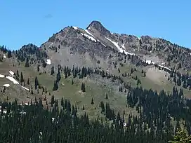 Marcus Peak[2] is a 6,962 feet (2,122 m) summit located in Mount Rainier National Park in Pierce County of Washington state. It is part of the Sourdough Mountains, a subset of the Cascade Range and is situated north of Dege Peak. The peak was named in 1932 for Marcus Whitman (1802–1847), an early pioneer and physician. The Whitman Glacier on Little Tahoma also honors him. Access to Marcus Peak is limited due to snow closing the Sunrise Road much of the year. July, August, and September are typically the months when the Sunrise Road is seasonally open for vehicle traffic. The nearest higher peak is Palisades Peak, 0.64 miles (1.03 km) to the north-northeast.[1] Precipitation runoff from Marcus Peak drains into the White River.