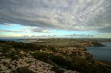 The Marfa Ridge is a geographical ridge in Northwest Malta. The ridge is mostly known for hiking trips.[1] On the eastern tip of the ridge, Maltese farmland is very common. The entirety of the ridge is made out of Globigerina limestone and is around 5.16 miles (8.30 km) long. Its highest point is on its western tip at 411 feet (125 m).[2] The largest nature reserve in Malta along with the largest bay are both present around 1 kilometre (0.62 mi) south of the ridge.[3]