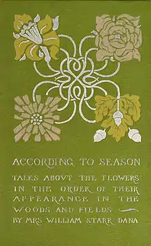 She began her career as a book cover designer in the late 1880s, initially doing commissions for Charles Scribner's Sons and A.C. McClurg and later for other publishers as well. She designed more than 314 book covers and book bindings, about half of which were for Scribner's.[2][3] Her later work was influenced by Art Nouveau and favored plant-related motifs, bold colors, gold stamping, and often slightly asymmetrical designs in compositions that often seemed to be moving while standing still. [1][2] Authors for whom she designed several covers include Frances Hodgson Burnett, Florence L. Barclay, George Washington Cable, Charles Dickens, Paul Laurence Dunbar, Robert Louis Stevenson, Henry van Dyke, and Myrtle Reed.[2]She has been called "the most productive and accomplished American book designer of the 1890s and early 1900s", and her work is sometimes compared to that of her contemporary Alice Cordelia Morse.