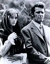 She subsequently co-starred with Peter Fonda in 92 in the Shade (also 1975), a drama directed by novelist Thomas McGuane, based on his own book.[35] While filming, Kidder became romantically involved with McGuane, and in March 1975 relocated with him to Livingston, Montana.[15] She subsequently became pregnant, and gave birth to their only child, daughter Maggie McGuane, on October 28, 1975.[lower-alpha 2][38] During this time, Kidder took a hiatus from acting, though she appeared in the March 9, 1975, edition of The American Sportsman, learning how to hang glide, and providing the narration, with a remote microphone recording her reactions in flight; the segment concluded with Kidder doing solos soaring amid the Wyoming Rockies.[39] She was also photographed by Douglas Kirkland for the March 1975 issue of Playboy, accompanied by an article written by Kidder herself.[40] Kidder and McGuane married on August 2, 1976,[41][42] but the marriage ended in divorce on July 21, 1977.[36][3] During the marriage, Kidder stated that her self-esteem had faltered significantly, and she found it difficult to maintain a career in film while residing in Montana.[15]