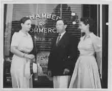 Margot Mayo and Miss Deska of American Square Dance Group of New York City and Bascom Lamar Lunsford (center), director of the Mountain Music Festival, Asheville, North Carolina