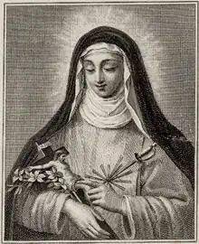 Maria Bagnesi, TOSD (15 August 1514 - 28 May 1577) was an Italian Catholic professed member of the Third Order of Saint Dominic.[1] Bagnesi remained confined to her bed for most of her life after falling ill upon receiving news that her father arranged a marriage for her - she escaped this fate but remained in her room where people flocked to seek her counsel. Due to her devotion to Bartholomew the Apostle, she assumed the name of "Bartolomea" and added it to her name as a sort of middle name.[2]