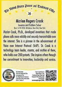 "Marian Rogers Croak Inventor Collectible Card". from the United States Patent and Trademark Office
