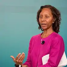 During her time at AT&T she patented the technology that allowed cellphone users to donate money to organizations using text messaging.[6] She developed this technology during the aftermath of Hurricane Katrina, and it revolutionized how people donate to charitable organizations when a natural disaster occurs.[2] She received the 2013 Thomas Edison Patent Award for this technology.[2] She was inspired to do this after seeing AT&T develop technology that helped American Idol set up a voting system that relied on text messages rather than voice calls, in 2003.[7] The technology that she created with co-inventor Hossein Eslambolchi, was not finalized until October 2005, a couple of months after Hurricane Katrina.[7] But through this technology after the 2010 Haiti earthquake, more than $43 million in donations were collected by relief organizations through donations by text message.[8]