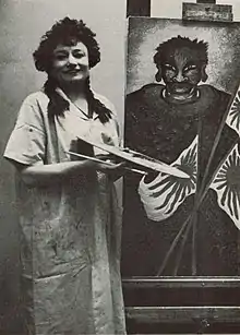 Edward Alden Jewell, art critic for the New York Times, said of her 1943 New York exhibition, "I should be inclined to refer to her work in this field as that of a primitive mystic. The large black and white canvases seem at once crude and powerful….All the war paintings are symbolic in nature. Their impact is sharp and disturbing. If accepted as manifestations of psychic phenomena, they are mysterious."[4][10]