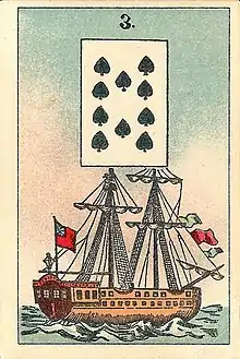 - ↑ Hoffmann, Detlef; Kroppenstedt, Erika (1972). Wahrsagekarten: Ein Beitrag zur Geschichte des Okkultismus. Bielefeld: Deutsches Spielkarten Museum. pp. 17, 21.