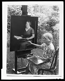 Goth applied for and received a scholarship to attend the Art Students League of New York in 1909.[11] With additional scholarships, part-time employment, and financial support from her sister, Goth continued her studies at the Art Students League for ten years.[12][13] During her stay in New York City, Goth boarded at the Three Arts Club, a residence on West Fifty-eight Street that catered to women pursuing the arts. Goth initially intended to become an illustrator, but switched to portraiture after studying with Frank DuMond, her instructor and mentor. DuMond helped influenced Goth's portraits, which broke new ground for women artists. Instead of focusing on portraits of children, which was the typical path for women portrait painters of that era, Goth made her career painting portraits of adults.[4] In addition to DuMond, Goth also studied under the direction of William Merritt Chase, Robert Aiken, George Bridgman, and F. Luis Mora while she was living in New York.[14]
