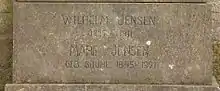 Jensen was born in Würzburg as the daughter of the German writer Johann August Moritz Bruehl (1819–1877). In 1865 she married the poet and historical novelist Wilhelm Jensen in Vienna, whose portrait she painted. It was included in the book Women Painters of the World.[1] The couple had six children, of which four survived. The couple first lived in Stuttgart, and then moved to Kiel where their youngest daughter Katharina was born (she later married Ernst, Prince of Saxe-Meiningen, and had six children). In 1872 they moved to Freiburg where they met the landscapist Emil Lugo, who made 50 plates for their book on the surroundings of Freiburg and the Black Forest. When the Jensens moved to Munich Lugo accompanied them, and when they spent summers in Fraueninsel, he accompanied them as well. Marie is buried there with her husband under a gravestone by the artist Bernhard Bleeker next to the grave of Emil Lugo.[2]