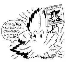 The Green Party of Aotearoa New Zealand said that if it formed a government in the 2017 election it would legalise cannabis. "Under its proposal, people would be able to legally grow and possess marijuana for personal use". The party said it would also "urgently amend the law so sick people using medicinal marijuana were not penalised".[13][14] The party negotiated its involvement in the Sixth Labour Government of New Zealand, which included securing a referendum on the legalisation of cannabis in New Zealand. The legalisation of cannabis in New Zealand was narrowly rejected in the 2020 New Zealand cannabis referendum.
