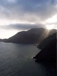 The Marin Headlands are a hilly peninsula at the southernmost end of Marin County, California, United States, located just north of San Francisco across the Golden Gate Bridge, which connects the two counties and peninsulas. The entire area is part of the Golden Gate National Recreation Area. The Headlands are famous for their views of the Bay Area, especially of the Golden Gate Bridge.