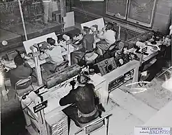 At the outbreak of the Korean War, MTACS-2 was severely under strength. Additional Marines were joined from other squadrons within Marine Air Control Group 2 to fill out the squadron's ranks prior to deployment.[6] The squadron departed Long Beach Harbor on 14 July 1950 on board USS General A. E. Anderson. They arrived in Kobe, Japan on August 1, 1950, the air defense section unloaded and set up operations at Itami Air Force Base, Honshu, Japan to be co-located with VMF(N)-513.[7] The air support section boarded the Japanese LST Q-109 and sailed for Pusan the next day.[8] After arriving in Pohang on 4 August, the Air Support Section assumed control of all close air support aircraft for 1st Provisional Marine Brigade engaged on the Pusan perimeter.[9] For the Inchon invasion, both sections of MTACS-2 departed their respective locations and headed for the new front. On 17 September, the squadron disembarked at Inchon. That same day, control of close air support passed from the Tactical Air Direction Center aboard USS Mount McKinley to MTACS-2 who was now controlling for all of X Corps.[10] The air support section aided the 1st Marine Division by enabling close air support throughout the battle. The air defense section provided air defense surveillance against possible enemy air intrusion.