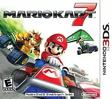 Mario Kart 7[lower-alpha 1] is a 2011 kart racing video game developed by Nintendo EAD in cooperation with Retro Studios and published by Nintendo for the Nintendo 3DS. As with the previous games in the Mario Kart series, players participate in racing on various Mario-themed tracks, playing as one of seventeen different Mario characters. While racing, the players make use of power-up items that either assist their character or hinder opposing characters. New additions to the game include hang-gliding attachments for karts, the ability to drive underwater, the ability to drive in first person, and the ability to fully customize the vehicles' builds. The game supports both local and online multiplayer for up to eight players. The game was a critical and commercial success, with it going on to be the best-selling game on the Nintendo 3DS, with over 18.98 million copies sold worldwide.