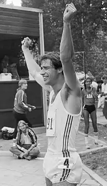 ![]() Mario Westbroek after winning the national 200 m title in 1982 | |
