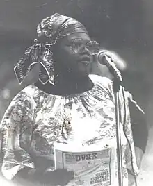 ![]() 1982 photograph of Stamps speaking at a Chicago city forum | |