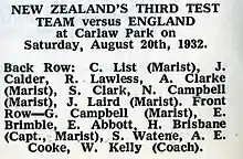 3. "Marist Old Boys 17: North Shore 3/Notes on the Game/Marist Old Boys V North Shore". The New Zealand Herald. Vol. LVI, no. 17223. 28 July 1919. p. 7. Retrieved 15 August 2019.