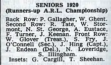 In 1920 Marist entered teams in the first grade, second grade, and fourth grade. Their second grade side withdrew after 11 rounds, while their fourth grade side withdrew after 2 rounds. Their first grade team drew in round 2 against Newton Rangers but then had their first ever win in the first grade championship (Monteith Shield) when they defeated Grafton Athletic 15–3 at Victoria Park. Bill Stormont and Billy Ghent scored tries and A. Eustace kicked a goal. They ultimately won 7 games along with their draw and finished third in the seven team competition.