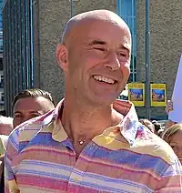 Mark Levengood, (born 10 July 1964 in Lejeune Base Camp, North Carolina, in the United States), is a Finnish journalist, writer, and television host who is working in Sweden. He is a Swedish-speaking Finn who grew up in Helsinki. He was married to Jonas Gardell between 2011 and 2023.[1] They have one child each, a boy, who is Gardell's biological child, and a girl, who is Levengood's child.[2] Levengood was born to an American father and a Sweden-Finnish mother.[3]