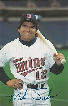 - ↑ Orlando Sentinel, "TUESDAY'S NOTEBOOK"(June 5, 1985, Sports Section, Page D3); "..and rookie catcher Mark Salas, who is of Mexican descent, the Twins' minority percentage is 12 percent."